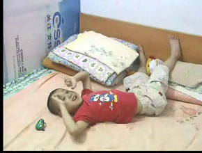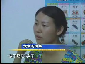 解說:斌斌的母親告訴記者,兒子3歲的時候,她發現兒子與其他孩子不同,眼神飄忽不定,始終不愿與父母 的目光對視,不愛開口說話,沒有什么事物能引起他的興趣。后來經診斷患了自閉癥,為了給孩子治病,斌斌的母親在全國各地咨詢求醫,花完了所有的積蓄。后來經人介紹,來到了鄭州市康達訓練中心,她說,生活再苦也不愿放棄,要堅持為孩子治療。