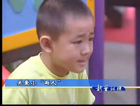 解說:冷雨告訴記者,柯柯今年4歲,不到兩歲的時 候就顯得非常聰明,他能對汽車的標識過目不忘,脫口而出。鄰居們都非常喜歡這個聰明可愛的孩子。正當冷雨夫 婦倆為自己的兒子感到驕傲的時候,他們怎么也沒有想到兒子突然變得不愛說話了。